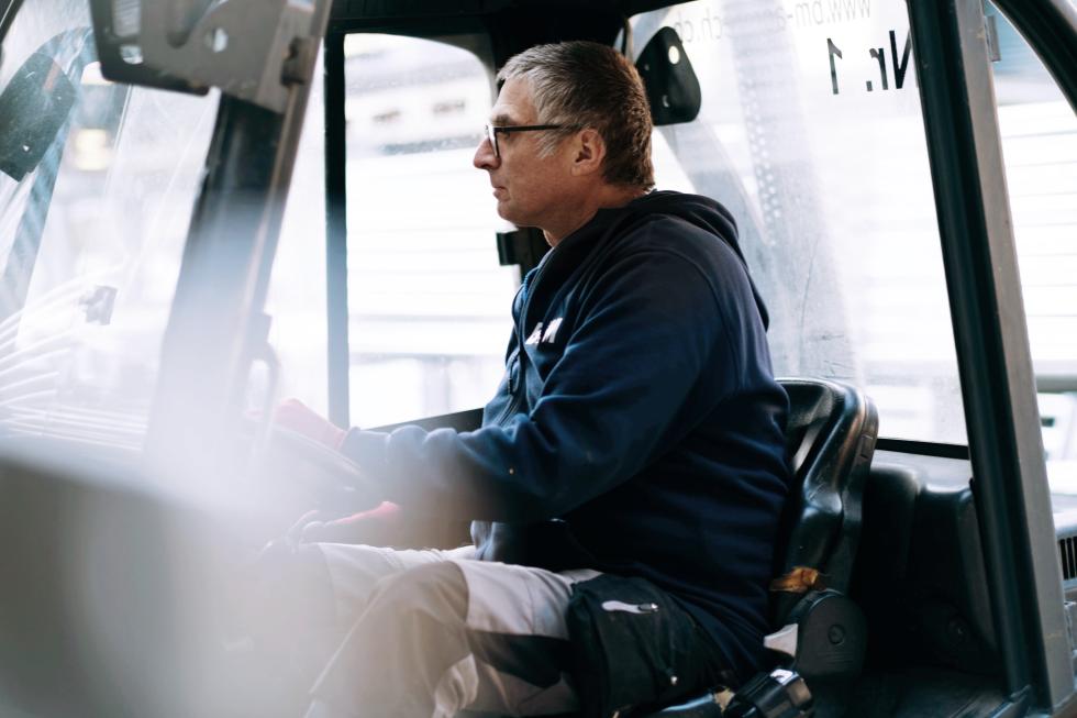 Als Jugendlicher habe ich Ofenbau und Plattenleger gelernt und ganze 27 Jahre in der gleichen Firma gearbeitet. Ich wusste: wenn ich wechsle, dann muss es stimmen und funktionieren. Nun bin ich viereinhalb Jahre bei der B+M und würde diesen Schritt wieder tun. Mein Alltag als Logistiker ist sehr unterschiedlich und ich bin viel auf den Beinen. Was in der Logistik hilft, ist ein gewisses Organisationstalent. Mit jedem neuen Tag kommen neue Bestellungen und Aufträge. Dann wird im Büro ein Lieferschein erstellt, zum Beispiel für ein Fressgitter. Das ist quasi der Bausatz für alle Teile. Hier darf bei der Bereitstellung für die Auslieferung natürlich nichts vergessen gehen, sonst hat der Monteur gar keine Freude.